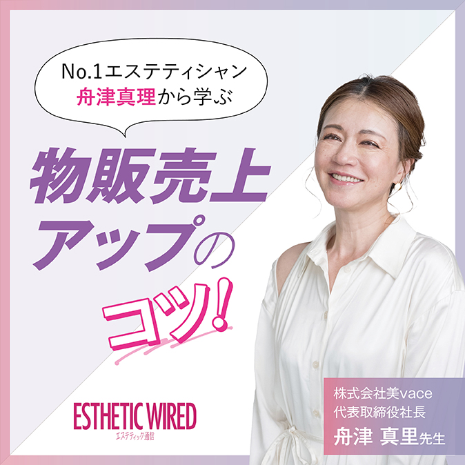 ※この記事は2024年2月16日に行なった、エステティック通信主催「【NO.1エステティシャン舟津真里から学ぶ】物販売上をあげる購買術 マストバイ2024特別セミナー」を基に作成しています。 ※マストバイ……エステティッ … 続きを読む 【NO.1エステティシャン舟津真里が教える】物販上アップの秘訣とは?