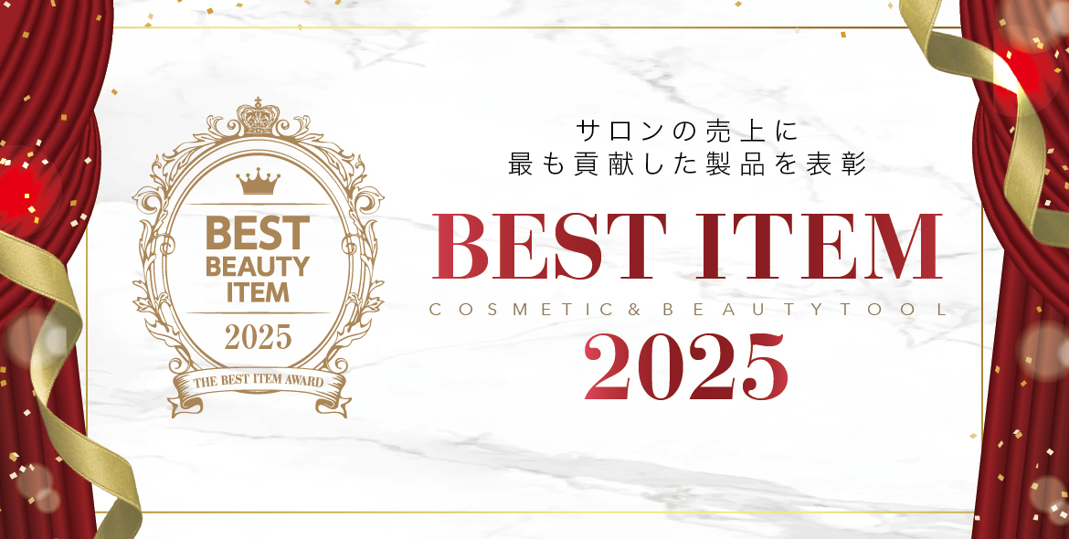 サロンオーナーが認めたベストセラー製品を顕彰する「ベストアイテム」は、「1年間で最もサロン売上に貢献したアイテム」をヒアリングし、多数の支持を集めたアイテムを讃えるアワード企画。
