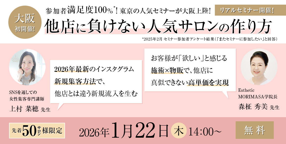 大阪初上陸! 他店と差別化する高リピート&高単価経営セミナー