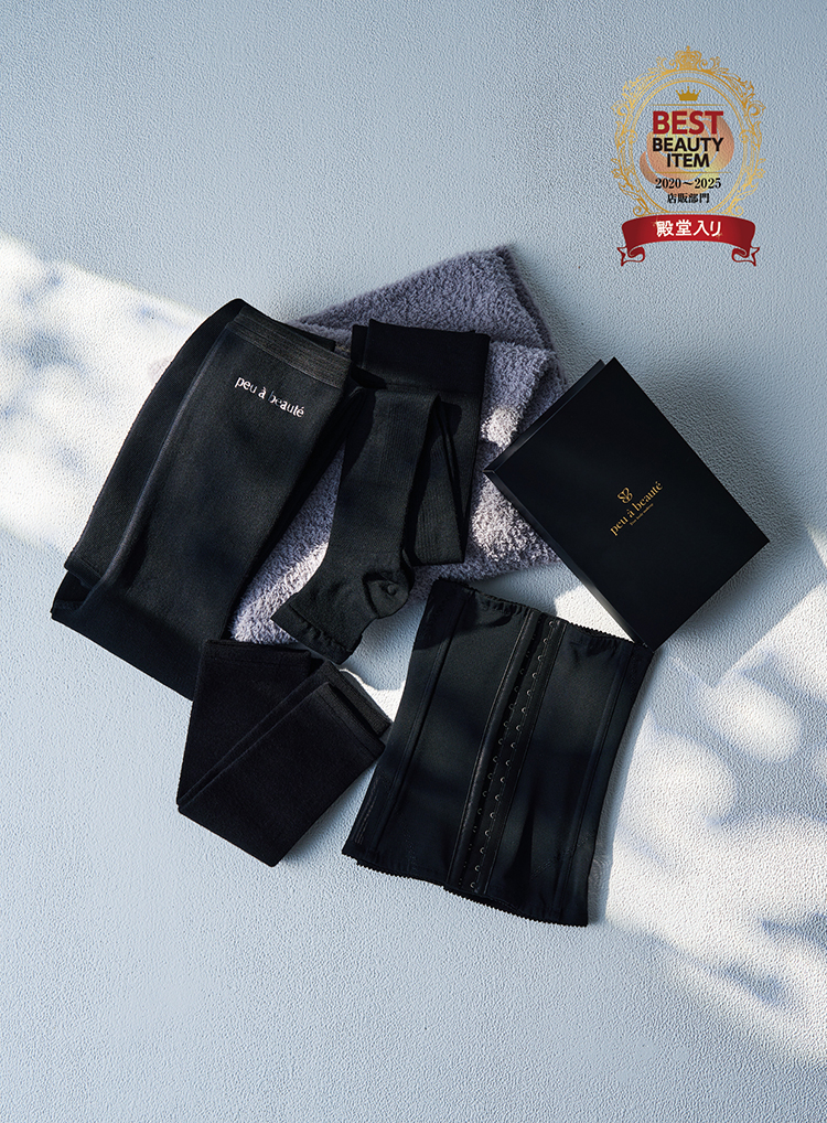 きつい 、硬い 、苦しいというシェイプ アップイン ナ ーのイメージを一新し、着心地と結果を追求。使用している光電子®繊維は、体温を利用して遠赤外線を輻射し、体を温め、めぐりにアプローチする。温かさと同時にムレを抑える設計で、長時間着用しても一年を通して快適なため、ボディメイク中に無理なく続けられると重宝されている。ながら美容アイテムとしても注目度が高い。