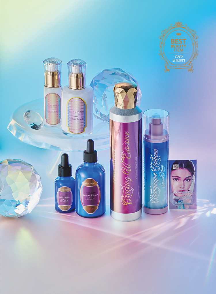 「世界が驚き、納得のできる本物を創りだしたい」という想いのもと開発された『リバースエイジングケア・コスメシリーズ』。“部分太り®”をかなえる『ボーテロンド・シェルル』、炭酸ガス×エクソソームの化粧液『クラッキングWエクソソーム』、“洗い流さない”炭酸ガスパック&美容クリーム『シャンパーニュ・カーボン』など、女性の悩みを根本から変える魔法の化粧品として玄人本物志向のお客様から愛されている。